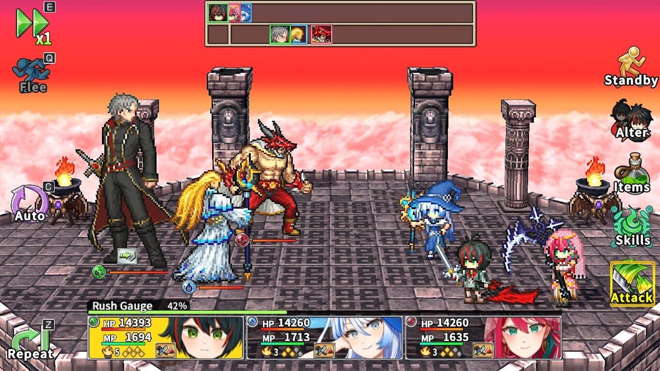 Alter Age – РПГ игра с пошаговыми боями, где ключевой особенностью становится способность Soul Alter, позволяющая героям мгновенно менять возраст и, вместе с ним, стиль ведения боя. В любой момент сражения персонажи могут принять взрослый или детский облик, и каждый из них по-разному раскрывает их потенциал. В зрелой форме бойцы наносят максимальный урон и действуют агрессивно, тогда как детская версия делает упор на поддержку, усиления и тактическую гибкость. Победы достигаются не только силой, но и продуманной стратегией.