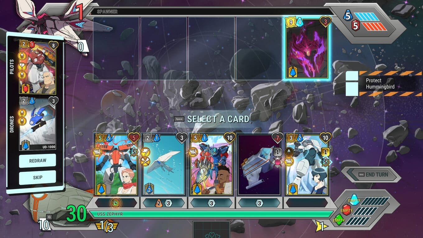 - Каждый раунд игрок выстраивает боевую линию из пяти бойцов, распределяя, кто бросится в атаку, а кто удержит оборону, защищая критически важные модули корабля.