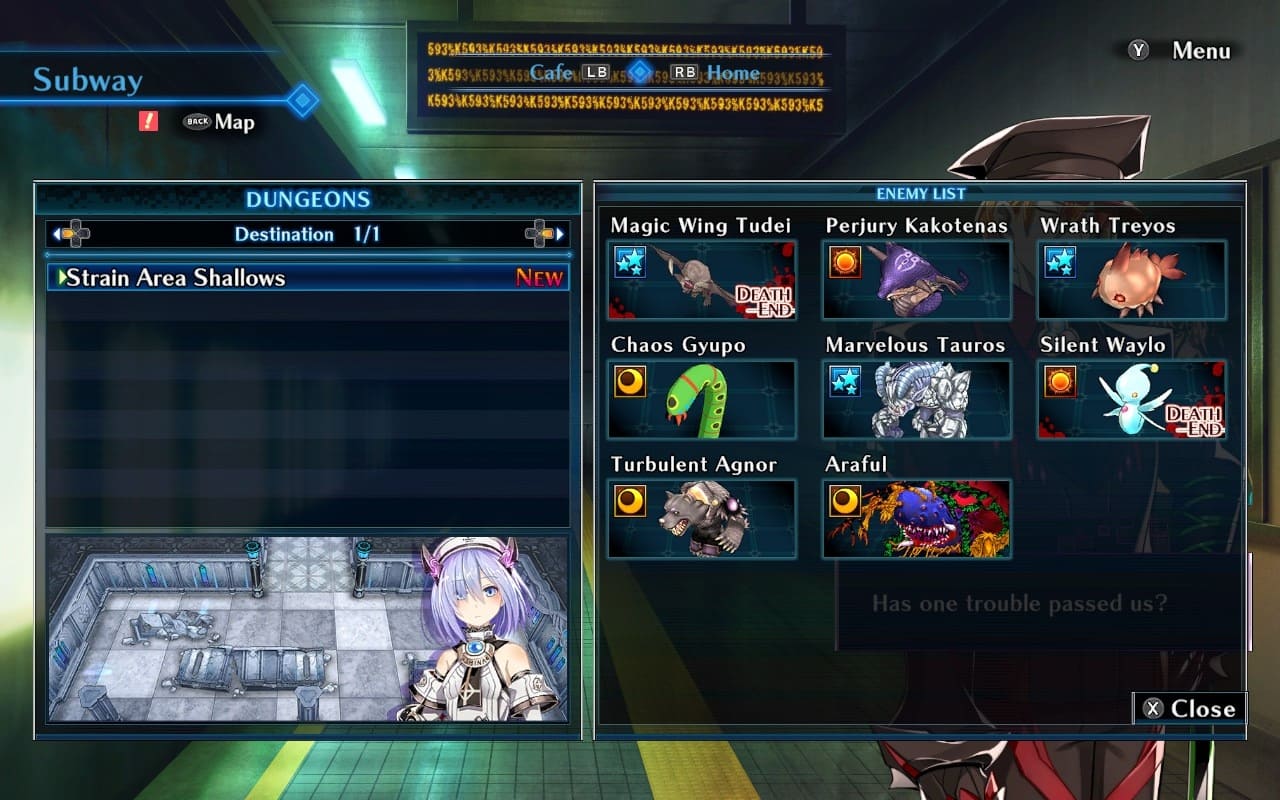 Death end re;Quest: Code Z – ролевое приключение с элементами пошаговой тактики и выживания, в котором Саяка Хиватари оказывается запертой в так называемой Области Напряжения – искаженном измерении, полном опасных подземелий. Каждое подземелье представляет собой живую систему: враги и ловушки формируются рандомно и немедленно реагируют на любое действие героини. Каждый шаг запускает ответный ход противников – они могут изменить позицию, подготовить атаку или нанести удар.