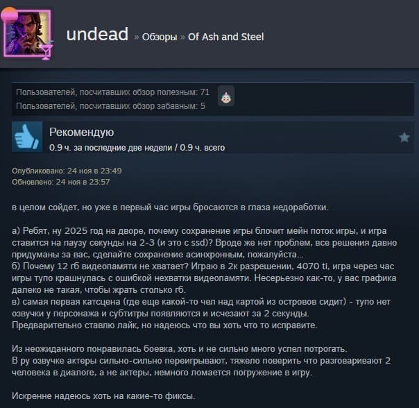 Of Ash and Steel – РПГ приключение в открытом мире, где главную роль играет не герой-легенда, а простой человек, оказавшийся в обстоятельствах, меняющих его судьбу. Протагонист, картограф по имени Тристан, становится единственным выжившим после кораблекрушения и попадает на мрачный остров Грейшафт – землю, опустошенную таинственным бедствием, известным как Мор. Лишенный боевого опыта и привычного ощущения безопасности, он вынужден шаг за шагом учиться жить среди хаоса, осваивая навыки выживания, владения оружием и магией.