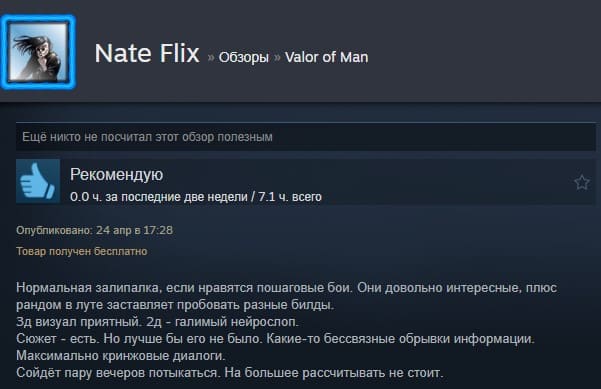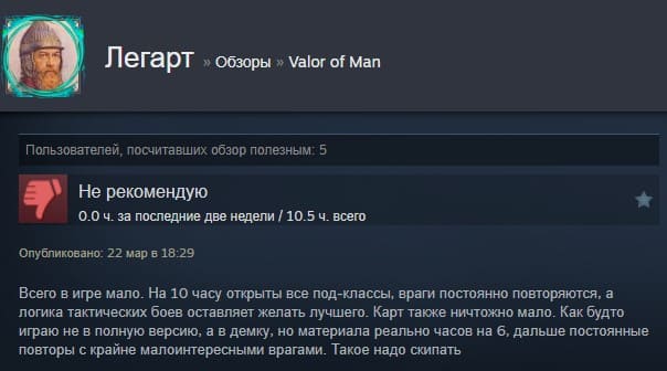 Отзывы об игре Valor of Man: