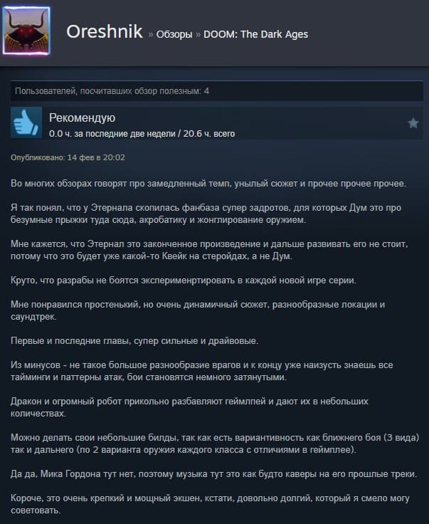 Отзывы об игре DOOM: The Dark Ages: