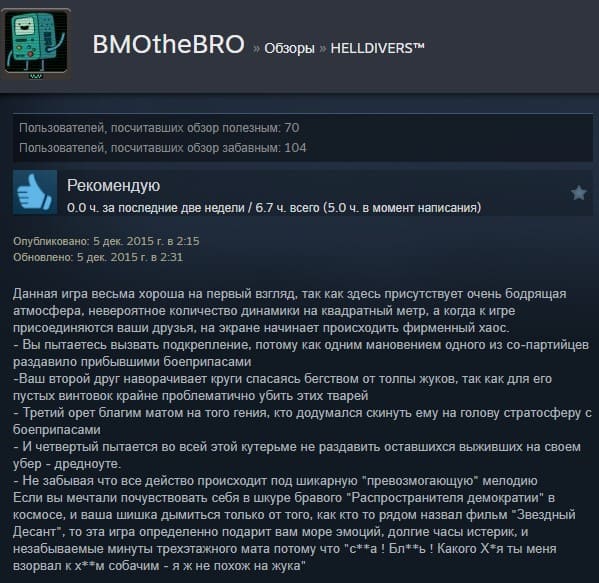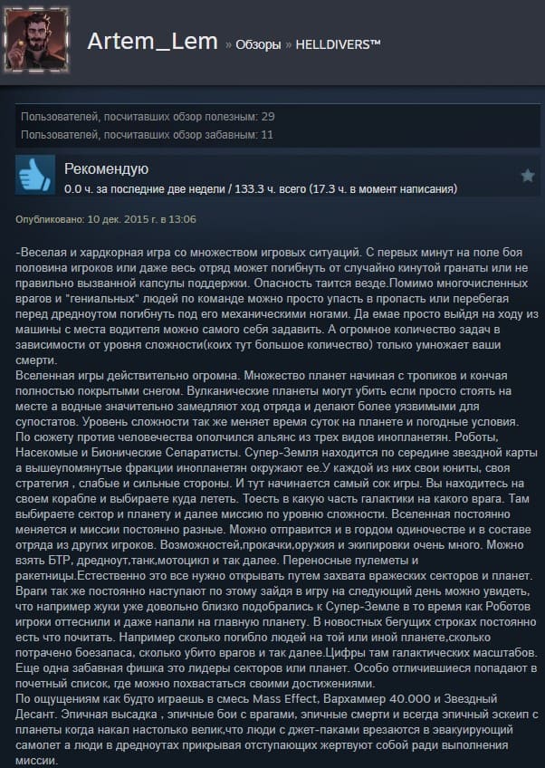 Отзывы об игре Helldivers: