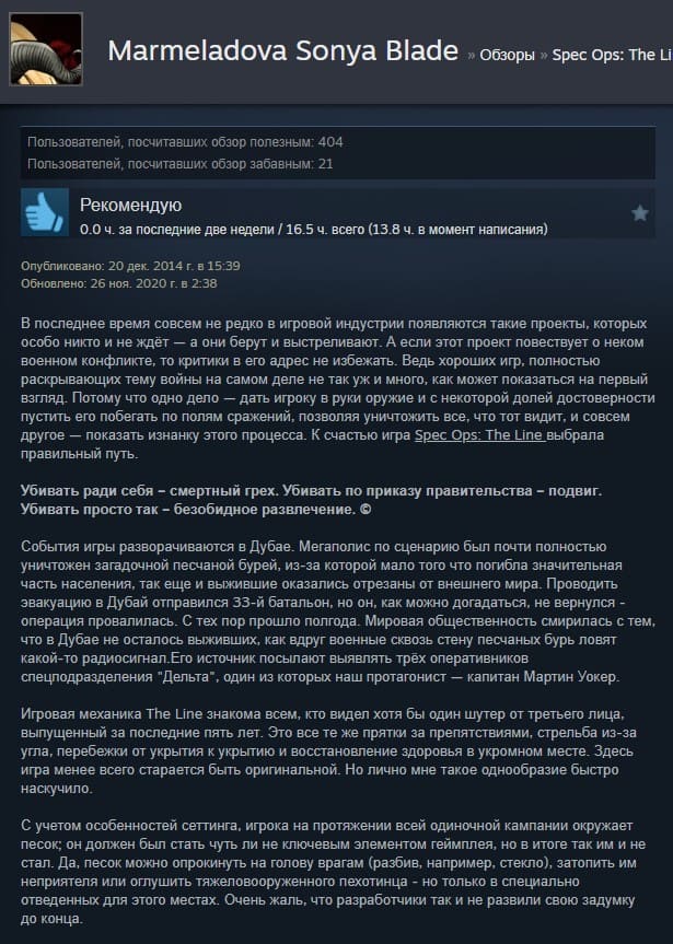 Отзывы об игре Spec Ops: The Line: