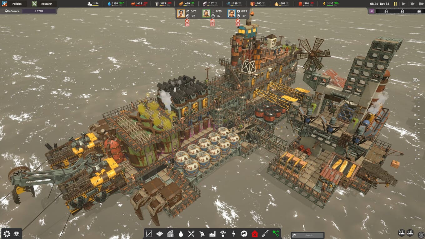 - Мосты, многоуровневые жилые блоки, склады – все должно быть выверено до мелочей, иначе океан быстро напомнит, кто здесь главный;