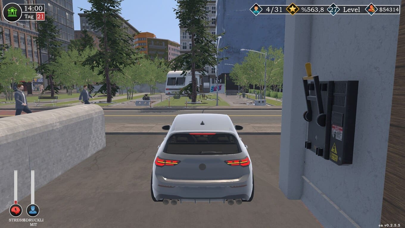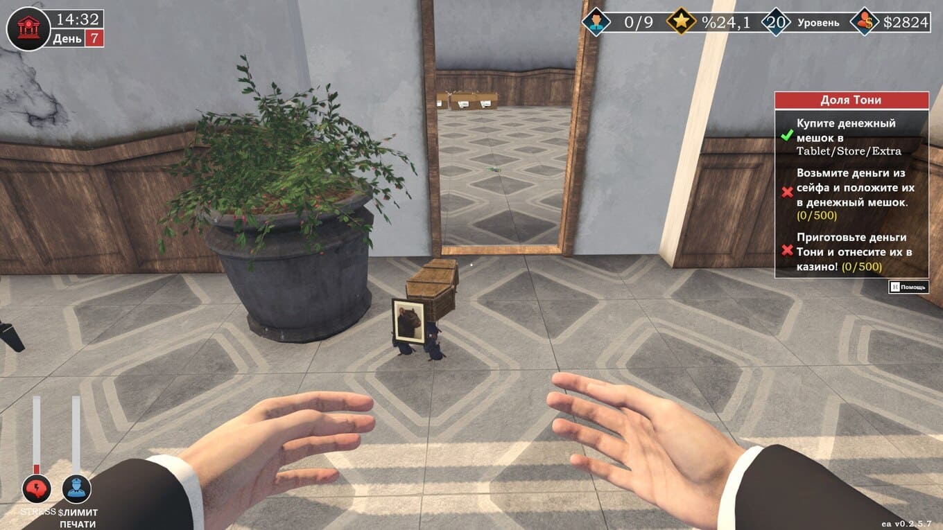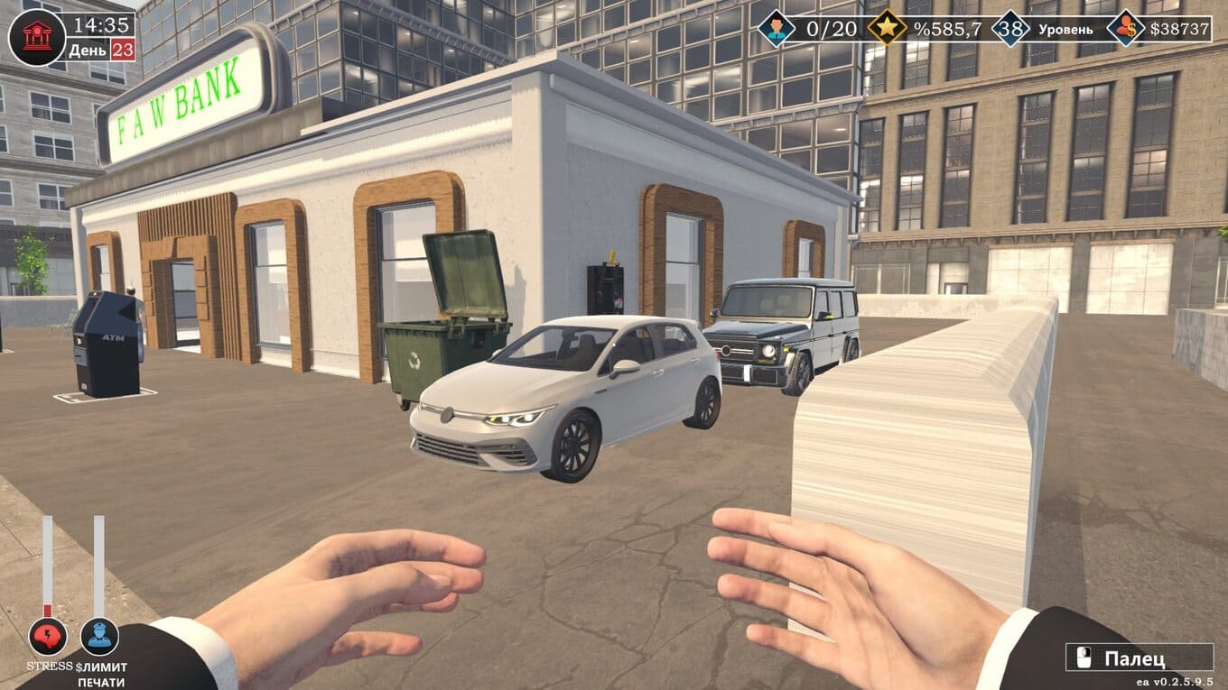 - Геймплей выполнен от 1-го лица и сосредоточен на прямом управлении активами и клиентскими потоками;