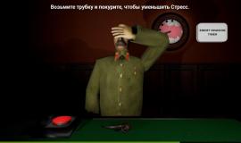 - Чтобы не потерять концентрацию, персонажу требуется разрядка: можно отвлечься на трубку или сделать глоток чего покрепче;