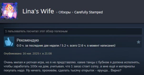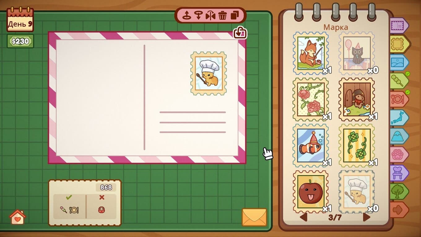 Carefully Stamped – неспешный симулятор творческой студии, посвященный искусству почтовых отправлений. Вам предстоит принимать заказы от самых разных клиентов – у каждого свой характер, настроение и особые пожелания. Ваша задача не просто выполнить заказ, а прочувствовать его и передать эмоции через открытку. Создание открыток здесь – настоящее пространство для фантазии. Вы вольны экспериментировать с марками, придумывать искренние тексты и украшать каждую работу так, как подсказывает вдохновение.