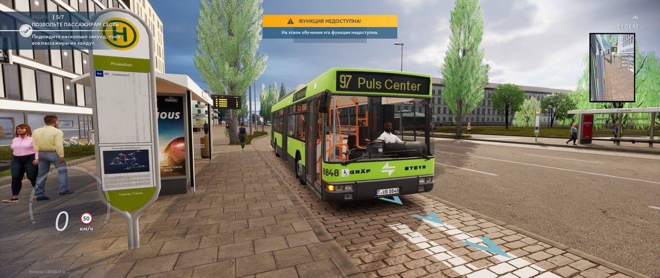 - Игра дает полную свободу: вы можете выйти из кабины, прогуляться по городу, сесть в транспорт как пассажир или в любой момент взять управление на себя.