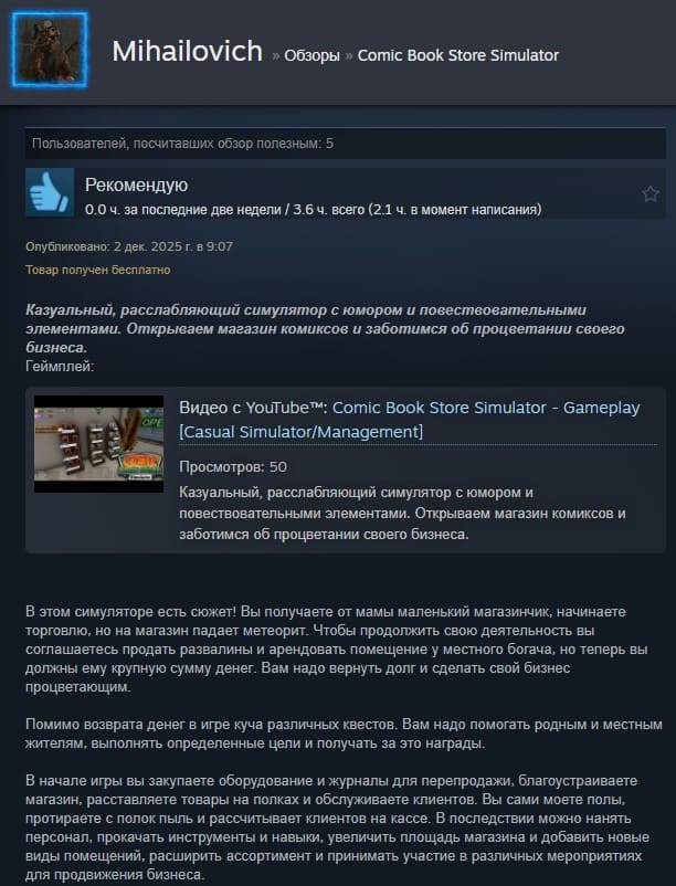 Отзывы об игре Comic Book Store Simulator: