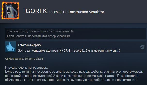 - При создании игры использовался опыт людей, долгое время работавших в данной сфере и знающих о тяжелом труде стройки;
