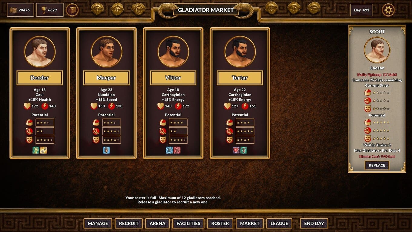 Gladiator Command – тактический менеджер, где победа определяется не во время боя, а задолго до него. Геймер берет под контроль управляющего лудусом, полностью отвечая за подготовку гладиаторов, ведь сами сражения разворачиваются без прямого вмешательства. Каждый поединок становится проверкой продуманности стратегии: от выбора снаряжения до точного распределения характеристик бойцов. Цена ошибки особенно высока – павшие воины не возвращаются, а значит, каждое выступление в многоуровневой системе лиг сопряжено с серьезным риском. Успех зависит не только от самих гладиаторов, но и от команды специалистов.