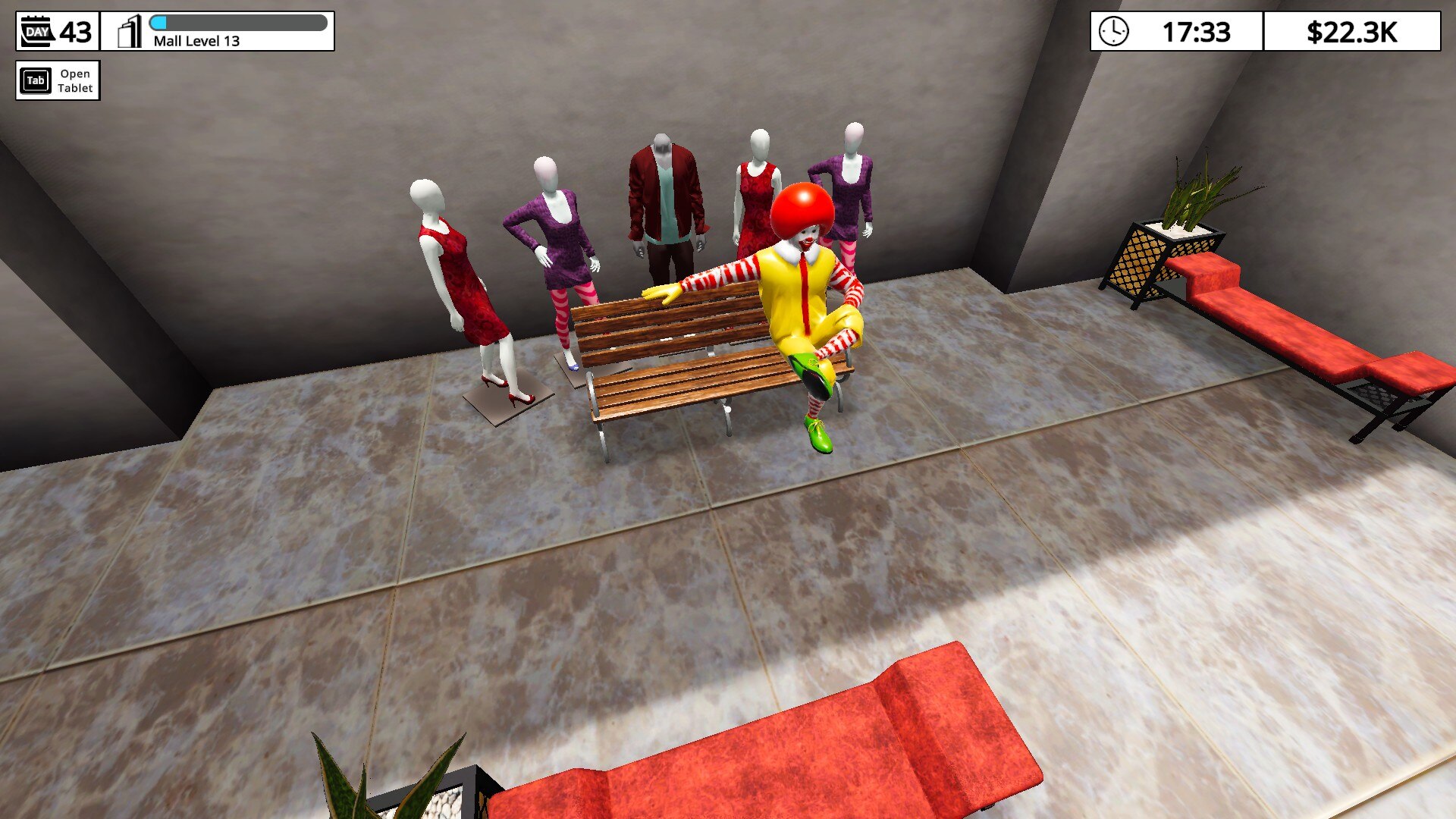 Mall Simulator – стратегия управления торговым центром, где каждое решение влияет на финансовое благополучие вашего бизнеса. Игроку предстоит внимательно следить за потребительскими предпочтениями, устанавливать оптимальные цены и обеспечивать высокий уровень удовлетворенности каждого посетителя, ведь именно это определяет успех центра. Внимание к ассортименту, сотрудничество с популярными брендами и оформление пространства создают неповторимую атмосферу для шопинга, привлекающую покупателей.