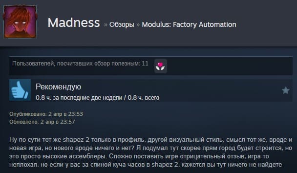 Отзывы об игре Modulus: Factory Automation: