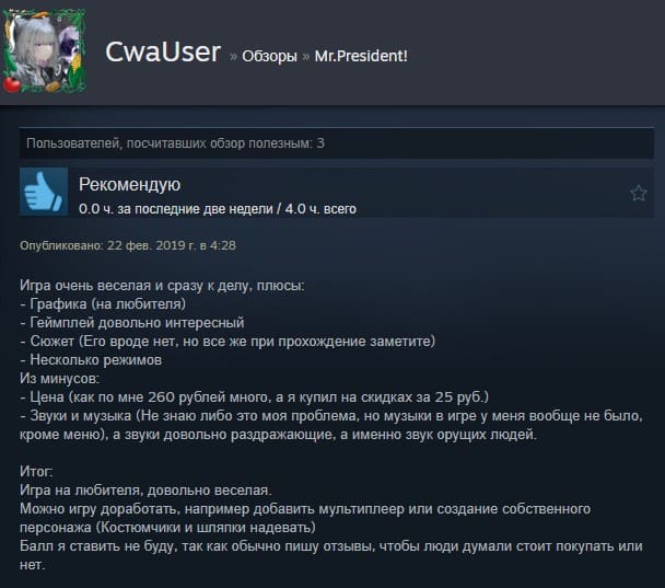 Отзывы об игре Mr.President!: