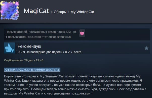 My Winter Car – хардкорный симулятор выживания и автосборки, действие которого разворачивается в беспощадных условиях северной зимы. Здесь холод – не просто фон, а постоянная угроза: игроку необходимо следить за температурой тела, грамотно подбирать одежду и учитывать погодные условия. Малейшая оплошность, приведшая к переохлаждению, заканчивается смертью персонажа и полной утратой достигнутого прогресса.