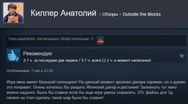 Outside the Blocks – вдохновляющая песочница, где миниатюрные миры обретают форму под стеклянными куполами. Здесь нет спешки и жестких целей – только чистое удовольствие от творчества. Игроки могут полностью сосредоточиться на создании собственных сцен, а встроенный фоторежим позволяет запечатлеть свои работы и делиться ими с другими, показывая оригинальные композиции, рожденные фантазией автора. Эта игра превращается в личное пространство для расслабления и свободного самовыражения через строительство диорам.