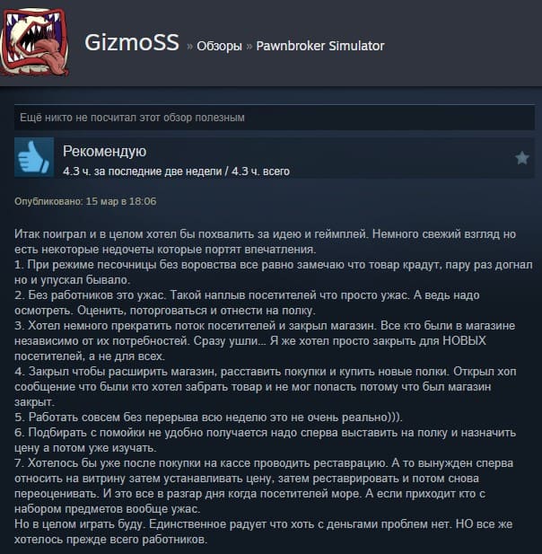 Отзывы об игре Pawnbroker Simulator: