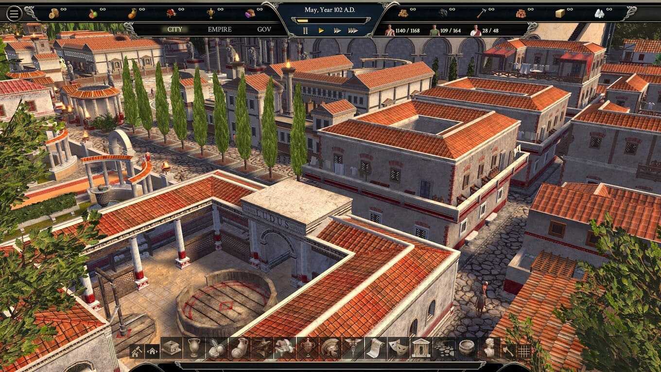 - Начните с пустых улиц и разрушенных кварталов, постепенно возводя форумы, акведуки, дома и святилища;