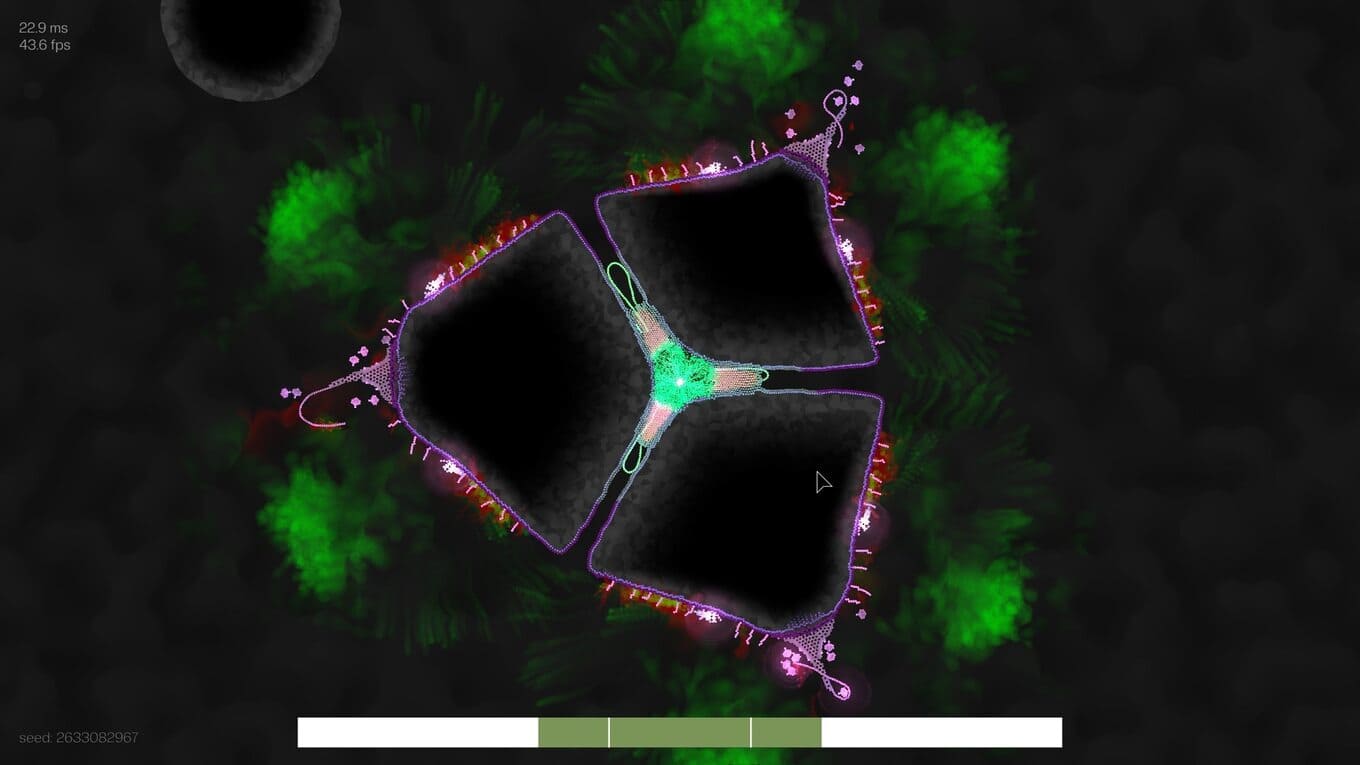 Primordialis – экспериментальный симулятор с упором на физику и биологию, где игрок сам выступает в роли эволюции. Вместо готовых существ вы создаете обитателя глубин буквально штрих за штрихом, комбинируя различные типы клеток. Каждая из них выполняет свою функцию: одни отвечают за движение, другие – за защиту или атаку. В результате можно собрать как маневренного охотника с электрическими импульсами, так и медленного, но смертоносного монстра с ядовитыми отростками.