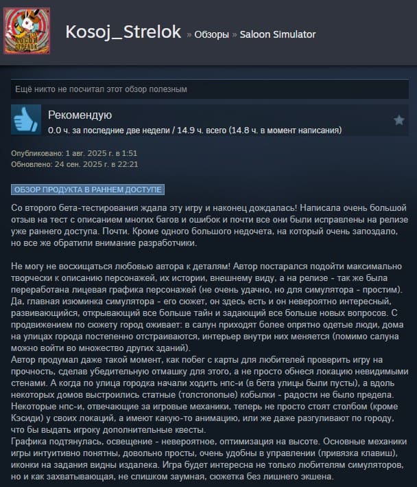 Отзывы об игре Saloon Simulator: