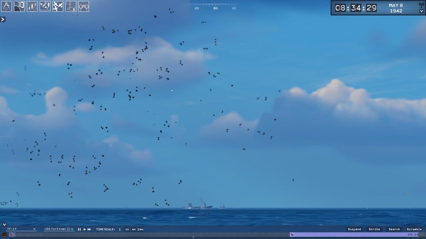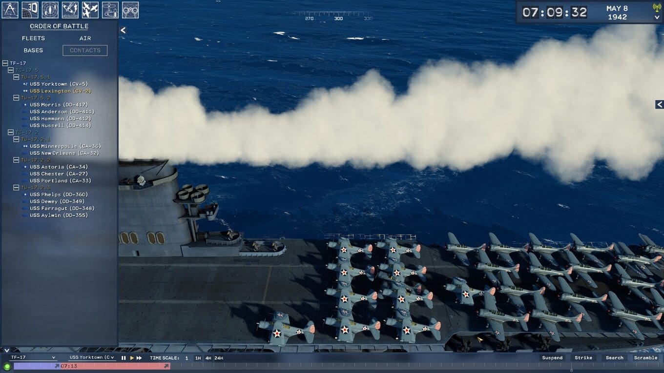 - Вам предстоит самостоятельно формировать авианосные группы, распределять силы по секторам, координировать вылеты эскадрилий и планировать операции;