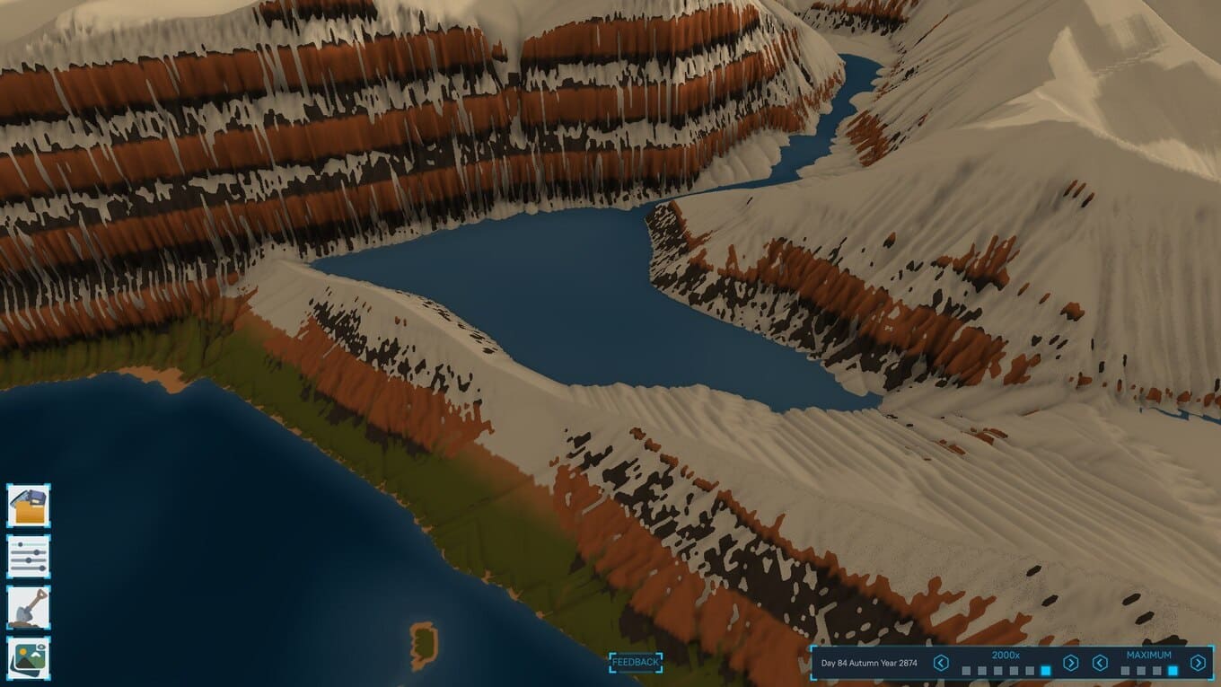 Terra Firma 2 – симулятор постройки мира, где игрок управляет невидимой силы природы, формирующей целые планеты. Здесь нет привычного управления персонажами – вместо этого вы получаете доступ к инструментам, позволяющим менять рельеф, влиять на климат и направлять тектонические процессы. После ваших действий мир начинает развиваться самостоятельно: появляются реки, ветер и вода размывают горные массивы, а растительность постепенно охватывает новые территории.