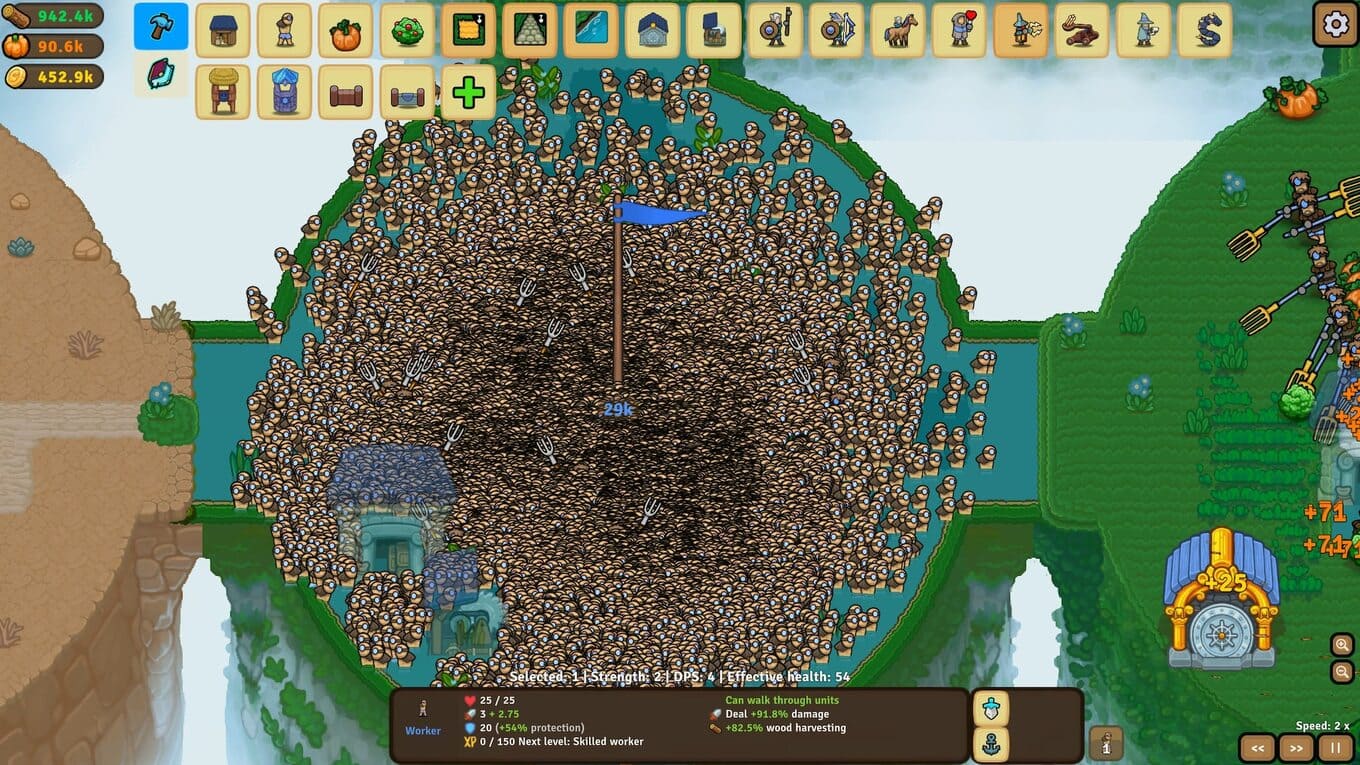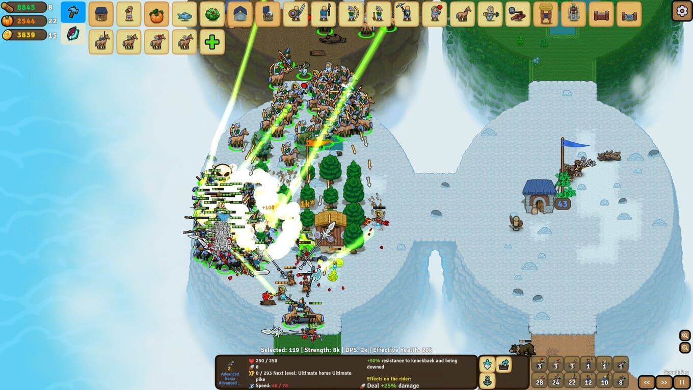 - Сражения отличаются масштабом – на поле боя сходятся сотни юнитов, создавая зрелищные и напряженные противостояния.