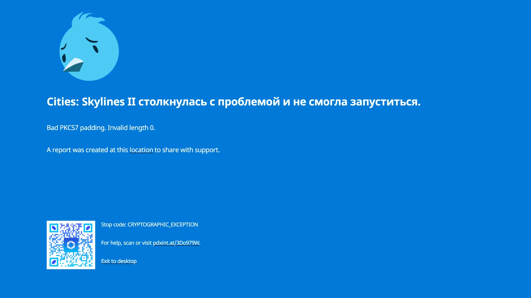 Ошибка «Bad PKCS7 padding» или «CRYPTOGRAPHIC_EXCEPTION»