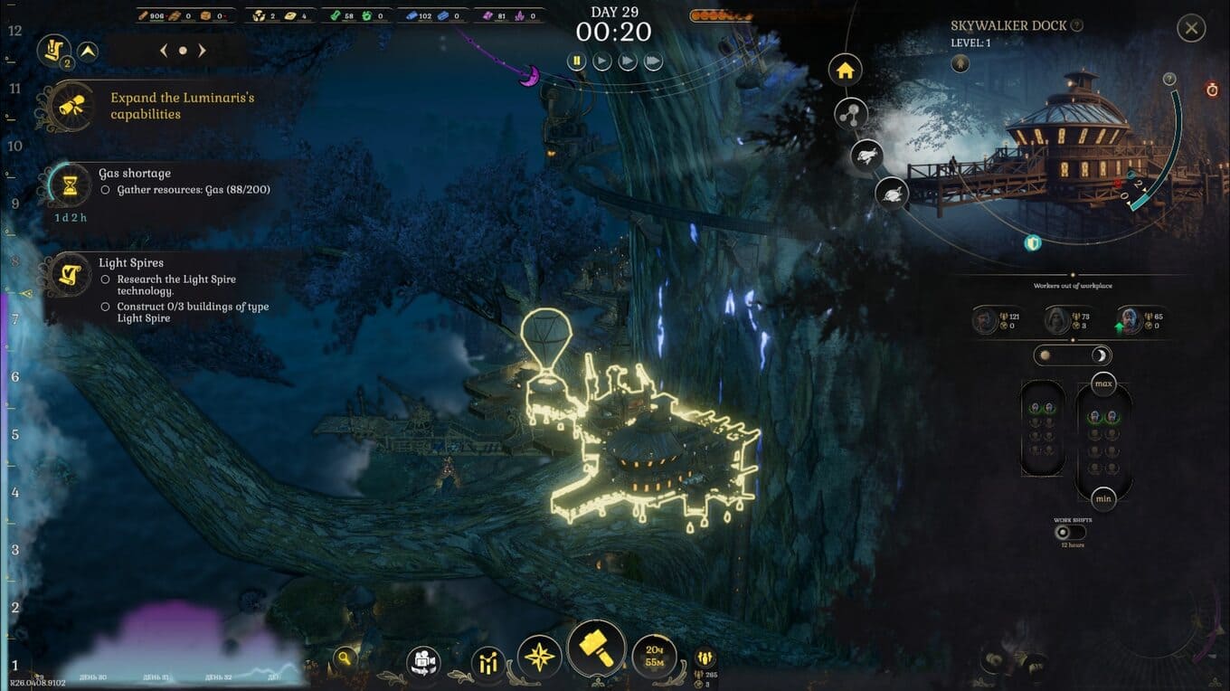 DarkSwitch – стратегия, объединяющая элементы градостроительного симулятора и башенной защиты в мрачном мире темного фэнтези. Игроку предстоит возводить вертикальное поселение, укорененное в гигантском живом растении, которое служит единственной опорой среди враждебной пустоты. Основной вызов приходит с наступлением ночи: из густого тумана появляются пугающие существа, и лишь грамотное управление ресурсами позволяет пережить их натиск. Ключевую роль играет соляриум – редкая энергия, добываемая из смолы и используемая для питания оборонительных систем. Освещение улиц становится не просто элементом декора, а жизненно важным барьером против безумия, которое приносит тьма.