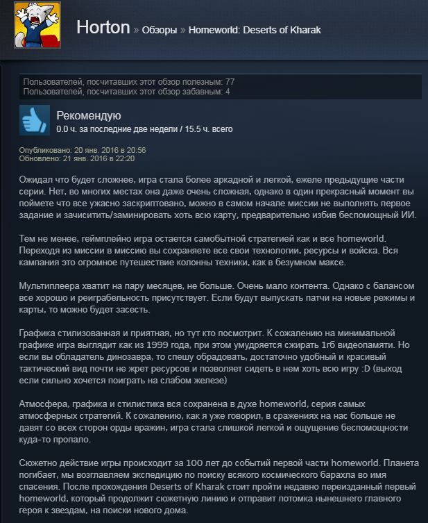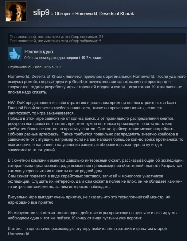 Отзывы об игре Homeworld Deserts of Kharak: