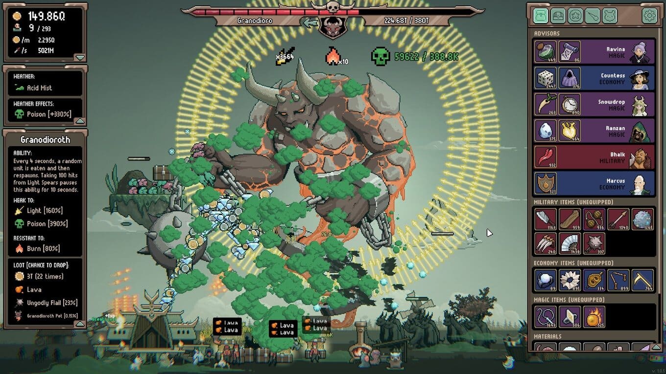 IDLE BOSS RUSH – стратегическая idle-игра, где из заброшенной земли предстоит возвести могучее королевство. Игрок начинает с маленького лагеря, который постепенно превращается в оживленный город, способный выдержать натиск гигантских чудовищ. Чтобы добиться успеха, нужно развивать экономику, грамотно распределять ресурсы и формировать армию, готовую бросить вызов титанам. Каждое сражение с боссом – проверка не только силы, но и терпения: можно победить тактическим расчетом или просто дать времени сделать свое дело.