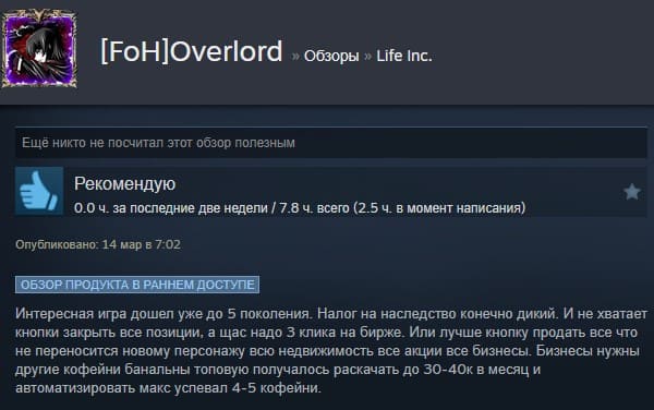 Отзывы об игре Life Inc.: