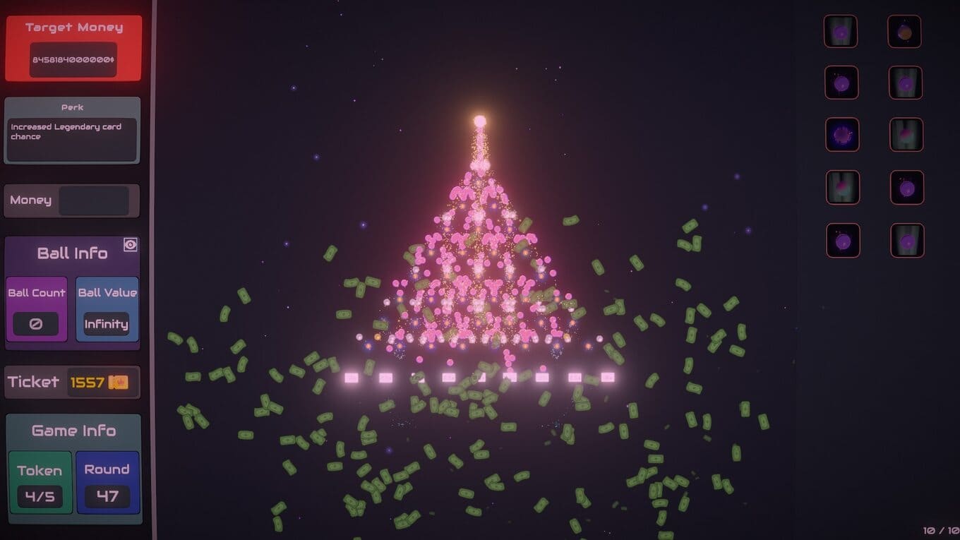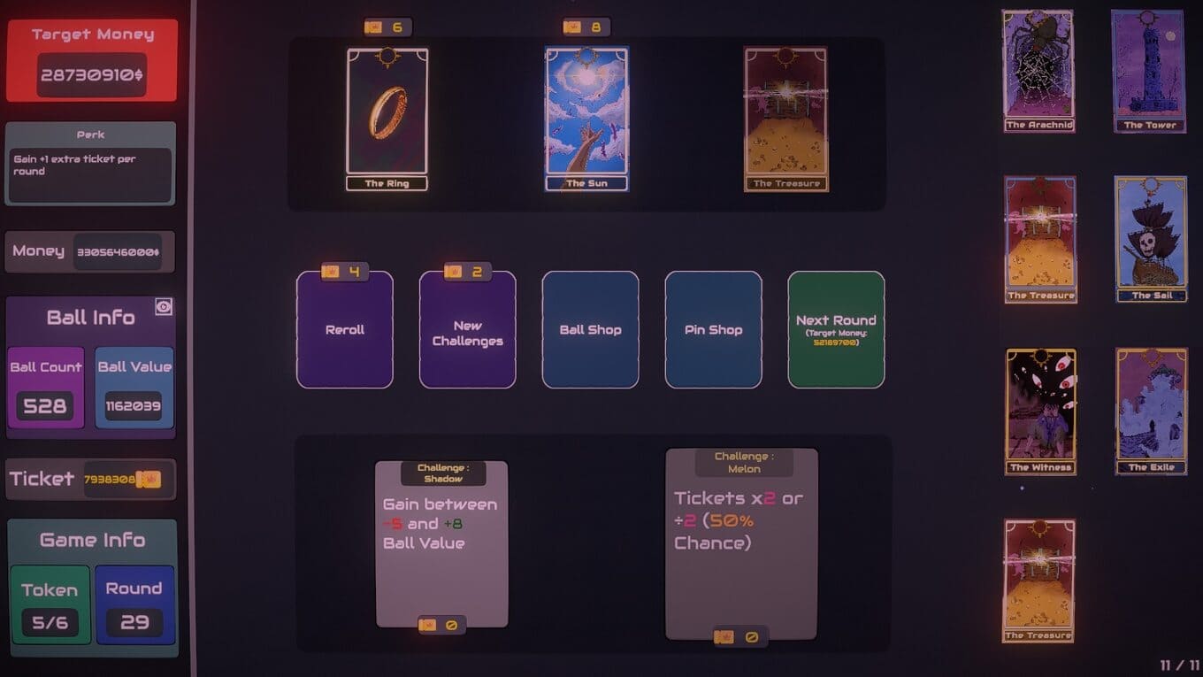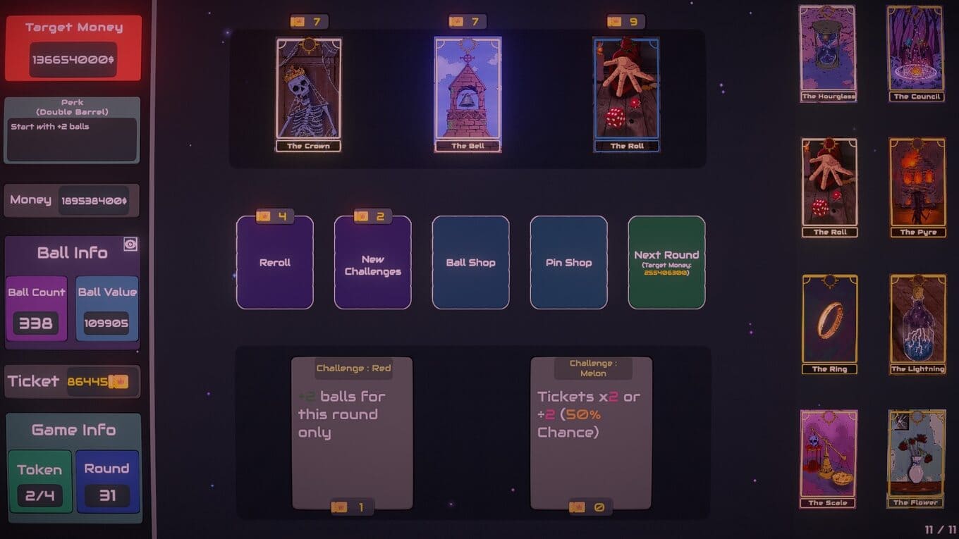 Plinbo: Roguelike Plinko – сочетание рогалика и азартной механики Плинко, где каждая сессия превращается в отдельный эксперимент со стратегией и удачей. Ни одно прохождение не повторяет другое: набор карт, событий и испытаний постоянно меняется, вынуждая игрока подстраиваться под новые условия. В центре игрового геймплея – автомат Плинко, в который запускаются шары. Их траектория непредсказуема: отскоки приводят к различным ячейкам с множителями, способными как резко увеличить доход, так и оставить без прибыли. За успешно завершенные раунды игрок получает билеты – основной ресурс, используемый для развития.