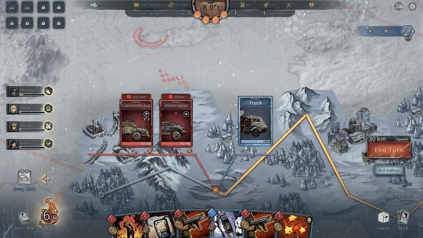 Snow Ash – карточное приключение о выживании и пути через замерзший конец света. Вы – Курьер, один из немногих, кто еще способен пересекать бескрайние снежные пустоши, соединяя разрозненные убежища и поддерживая хрупкую нить жизни. Каждый выход в путь – риск: пурга меняет правила, техника выходит из строя, а на дорогах поджидают те, кто готов отнять последний груз. Ваша главная опора – колода карт.