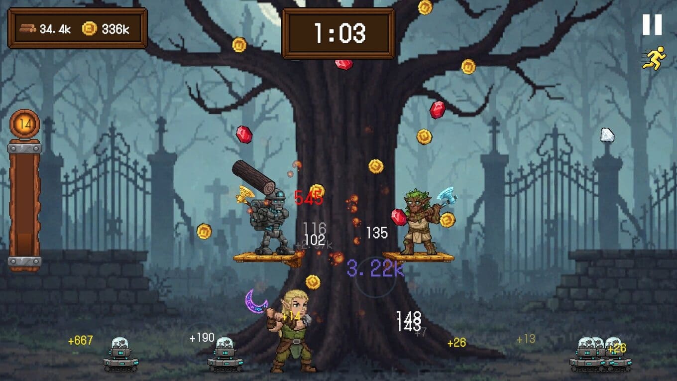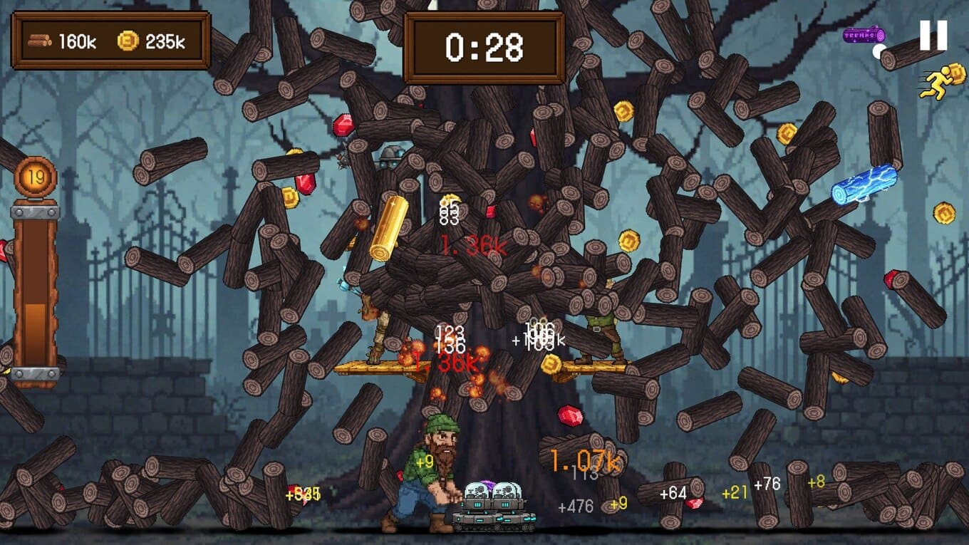 - Каждая попытка срубить исполинское дерево сопровождается яркими визуальными эффектами – экран наполняется потоками золота и ценными ресурсами, создавая ощущение настоящего прогресса.