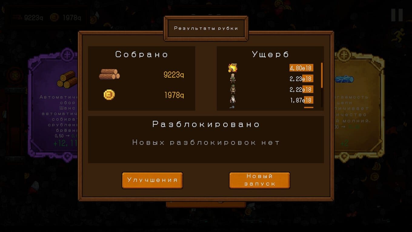 - Система улучшений продумана так, чтобы сгладить влияние случайности: вложенные ресурсы в древо талантов дают постоянный доступ к новым видам топоров, зельям и редким героям;