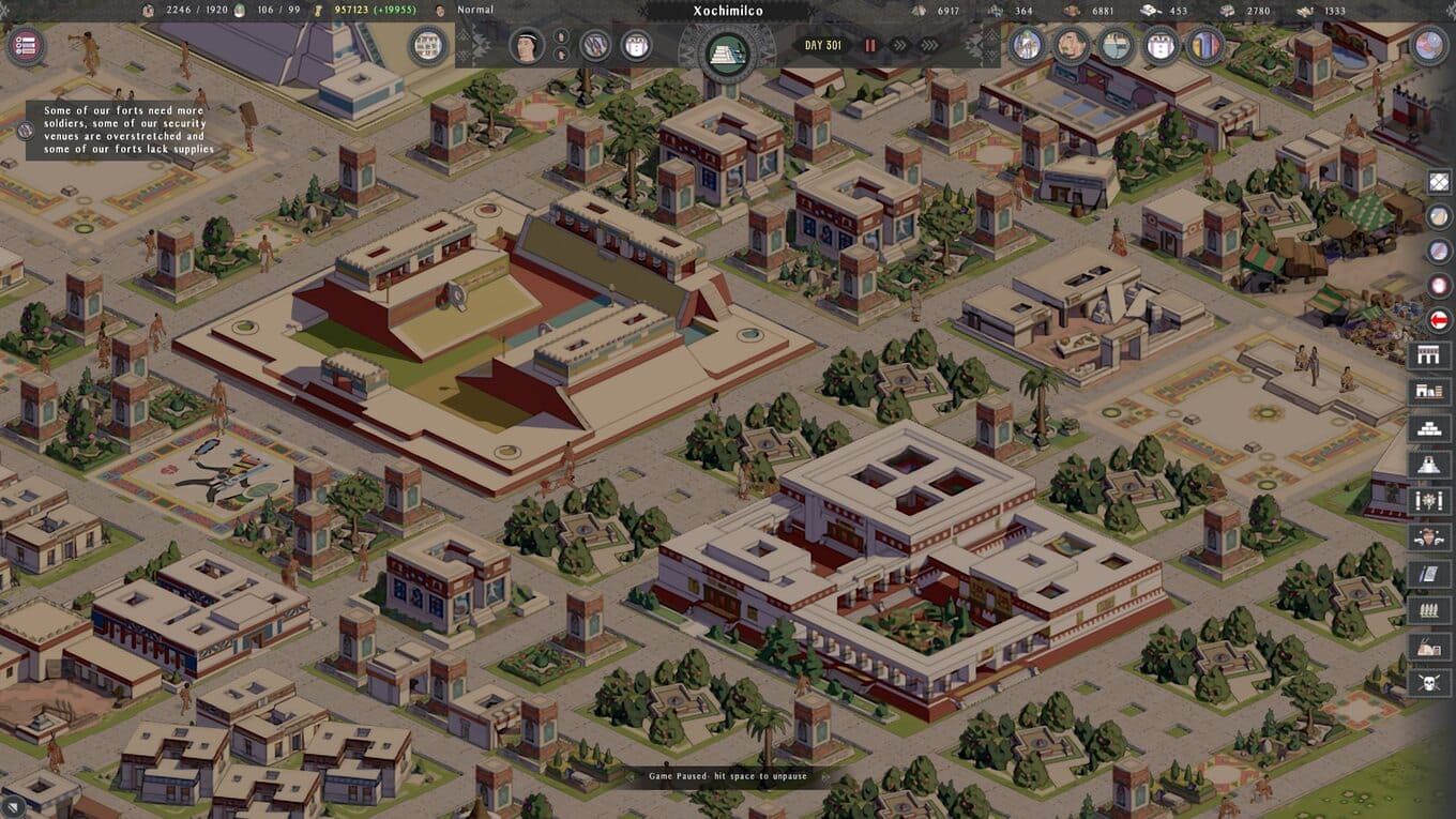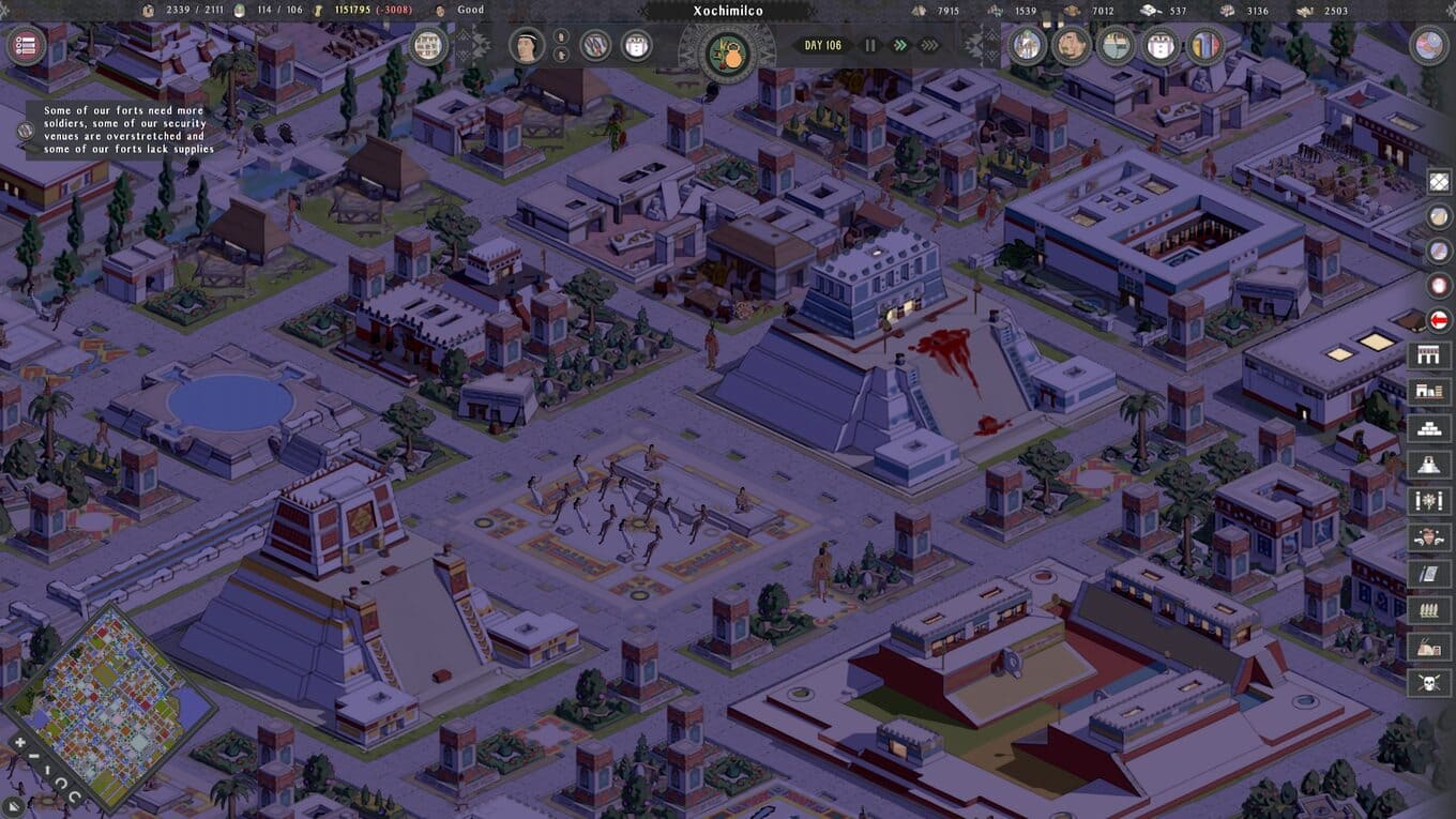 Tlatoani: Aztec Cities – стратегия с элементами градостроительного симулятора, в которой вы погружаетесь в мир древней ацтекской цивилизации и берете на себя роль будущего правителя. С самого начала вам предстоит развивать скромное поселение, обладая минимальными ресурсами. Постепенно, шаг за шагом, вы превращаете его в мощный и процветающий город, стремясь достичь высшего титула – тлатоани, верховного правителя, от решений которого зависит судьба всего народа. Успех требует продуманной стратегии: важно не только расширять территорию, но и грамотно распределять доступные ресурсы.