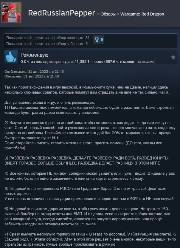 Отзывы об игре Wargame: Red Dragon: