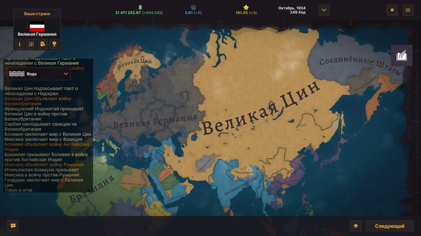 - Дипломатическая составляющая и управление государственным аппаратом играют ключевую роль: можно объявлять войны, заключать мирные договоры, создавать альянсы или подчинять другие государства;