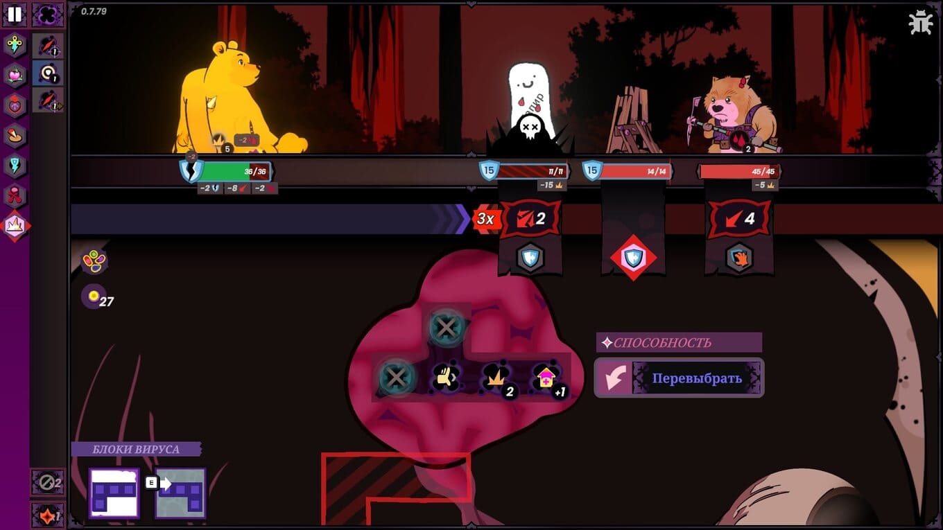 - Сражения строятся на грамотном сочетании эффектов и комбо, а сбор различных клеток позволяет собирать индивидуальную «колоду» способностей.