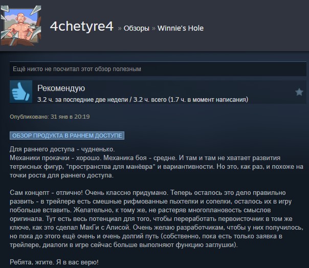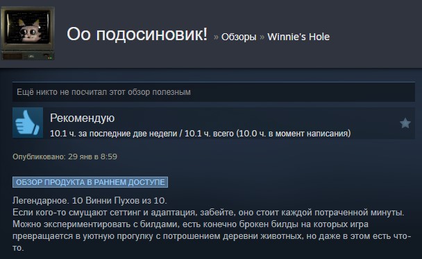 Winnies Hole – рогалик, где игроку отводится необычная роль: управлять не героем, а развивающейся инфекцией. Цель проста и пугающая – захватить организм знаменитого медведя изнутри, шаг за шагом подчиняя себе его тело. Путешествие по микроскопическим ландшафтам оборачивается зловещей аллегорией медицинских ошибок и бездушных опытов, в ходе которых знакомые образы сказочного мира искажаются до неузнаваемости.