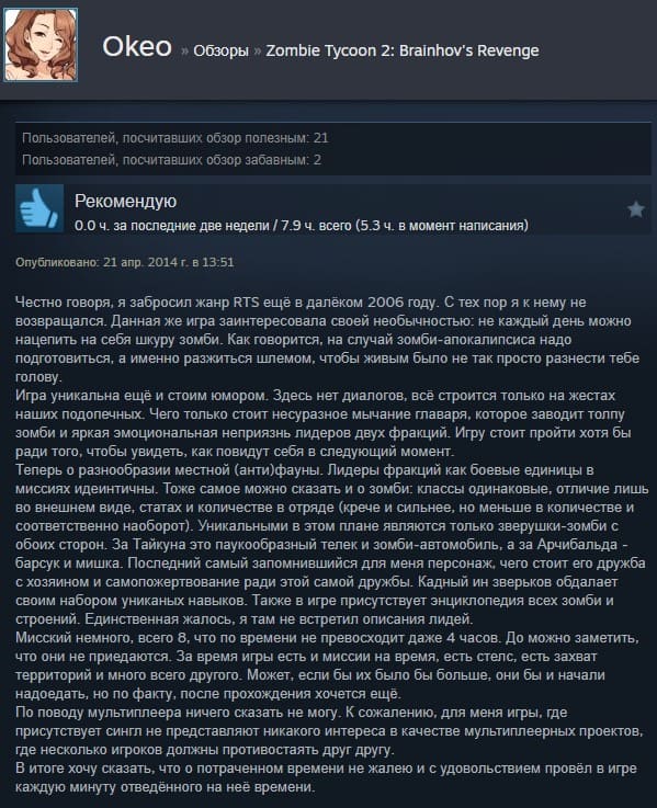 Отзывы об игре Zombie Tycoon 2: Brainhov's Revenge: